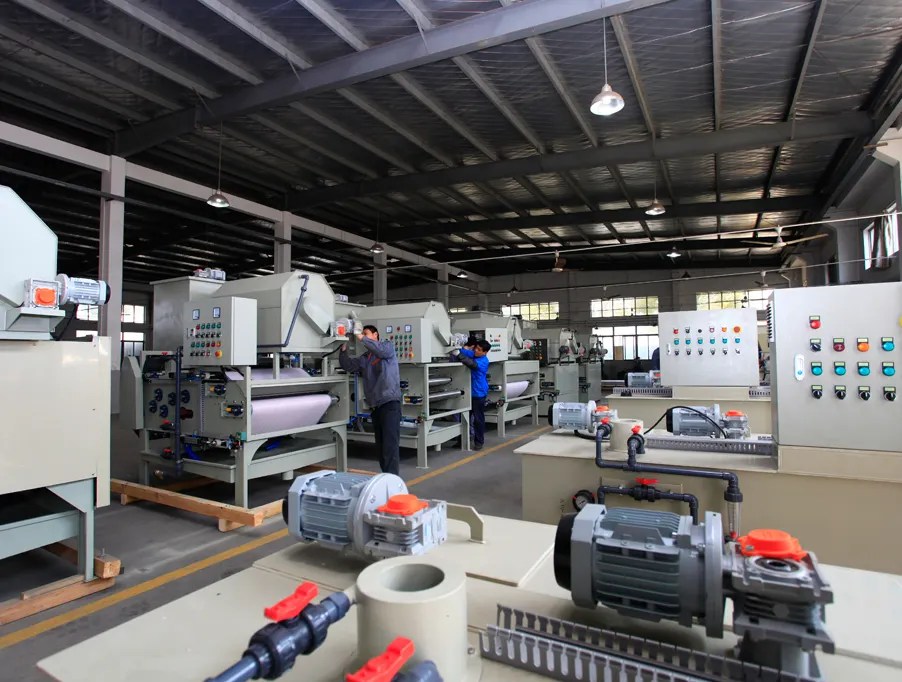 Sludge dewatering machine has perfect functions of automatic control and protection. Once the sludge quantity is insufficient, the coagulant is lacking, the filter belt tracking fails, the washing water pressure is too low, the compressed air pressure is too low, and the external signal command and other abnormal conditions are shutdown and alarm.