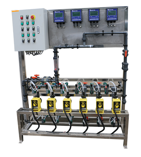 Automatic chemical dosing system takes metering pump as the main dosing equipment, and assembles the dissolving tank, agitator, liquid level meter, safety valve, check valve, pressure gauge, filter, buffer, pipeline, valve, base, escalator, automatic monitoring system, power control system, etc. on a common platform according to the needs of process flow to form a module, namely the so-called skid mounted combined unit. We provide acid dosing system, automatic chemical dosing system for swimming pools and other dosing system.