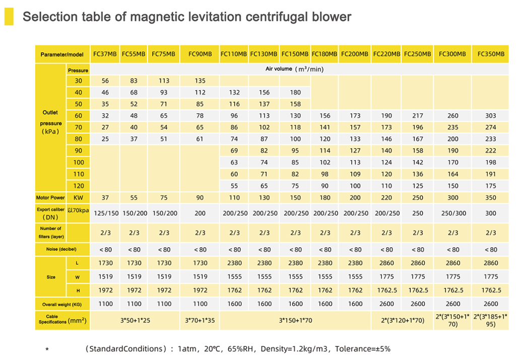 Magnetic levitation centrifugal blower is a type of blower that utilizes magnetic levitation force to support the high-speed rotation of the main shaft without friction. Its characteristics are high mechanical efficiency, energy saving, and low noise. It is widely used in various industrial occasions, and the product has the following core technical advantages: