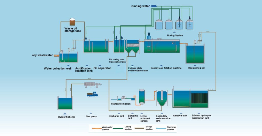 The remaining sludge and slag enter the sludge well, and then are lifted to the sludge drying field with a sludge pump, and then transported out for disposal after natural drying and dehydration.